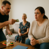 Наталья Николаевна ввалилась в прихожую, даже не сняв уличные ботинки. Грязные следы потянулись по светлому линолеуму. Мария застыла с пакетами в руках — молоко, хлеб, детский парацетамол из аптеки. Ключи всё ещё торчали из замочной скважины.