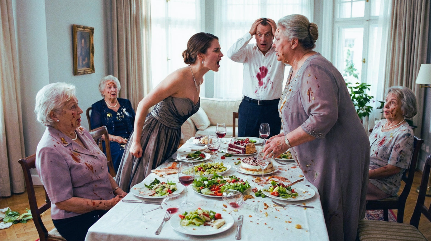 Она медленно отвернулась от стола и направилась в прихожую. Тем временем в гостиной за её спиной начал стремительно разгораться настоящий, первобытный скандал. Подруги свекрови, окончательно осознав масштаб испорченных нарядов и унижения, мгновенно переключили всю свою скопившуюся агрессию на ту, кто их сюда привел.