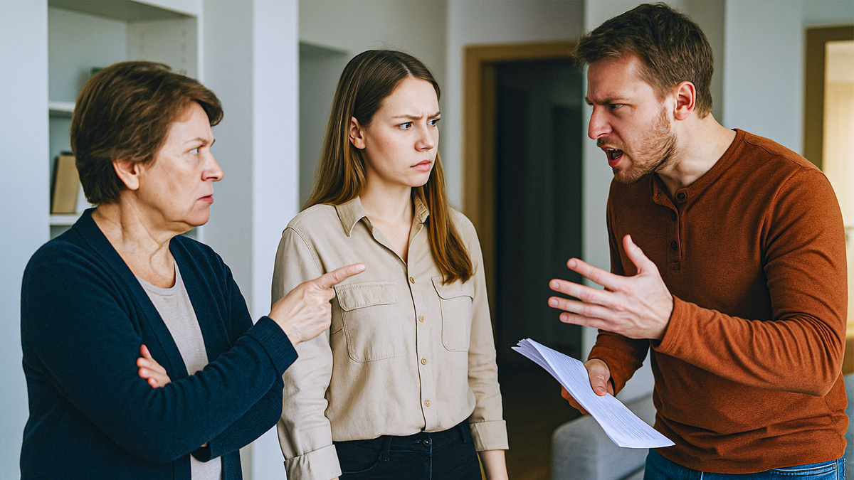 Виктор выхватил бумаги из рук матери, пробежался глазами по строчкам. Лицо мужа побледнело, потом покраснело. Виктор медленно повернулся к жене, сжимая документы в руках.