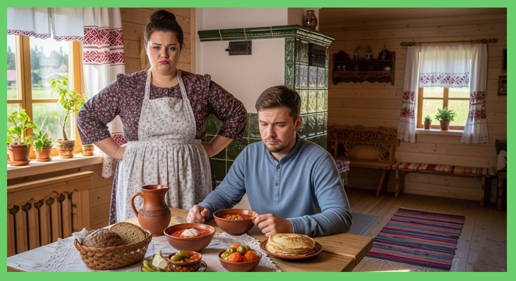 Утром Василий, продрогший и голодный после ночи в бане, осторожно, как вор, прокрался в дом. Он ожидал слёз, упрёков, может быть, даже новой вспышки гнева, но был готов на всё, лишь бы помириться. Однако Татьяна встретила его ледяным молчанием. Она двигалась по дому бесшумно, словно тень, и на его робкое «Доброе утро, Танюш» лишь едва заметно кивнула. Вместо привычной яичницы с салом, пышных блинов или хотя бы каши на молоке, на столе его ждала унылая серая масса в тарелке.