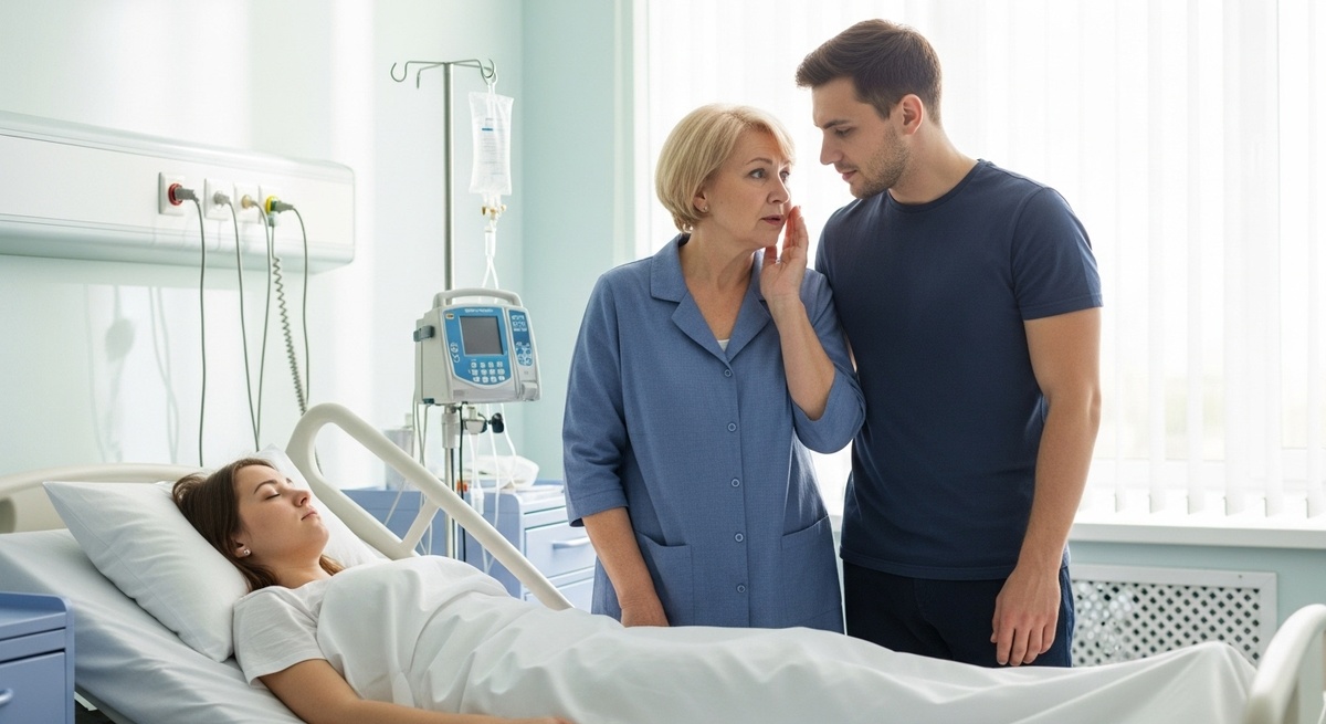 Дима появился на следующий день ближе к вечеру, и я сразу поняла, что он пришёл не один. За дверью палаты маячила знакомая фигура в бежевом пальто. Валентина Петровна никогда не упускала возможности проконтролировать ситуацию лично.