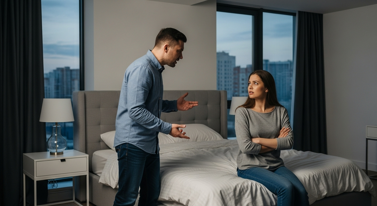 Кира молча прошла в спальню и достала сумку. Супруг пошел за ней.