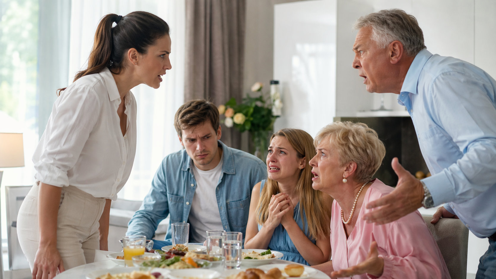 Муж медленно поднялся, глядя на жену так, словно видел впервые. Руслан Олегович и Ольга Петровна стояли в дверях, не зная, что делать. Алиса рыдала на диване, размазывая тушь.