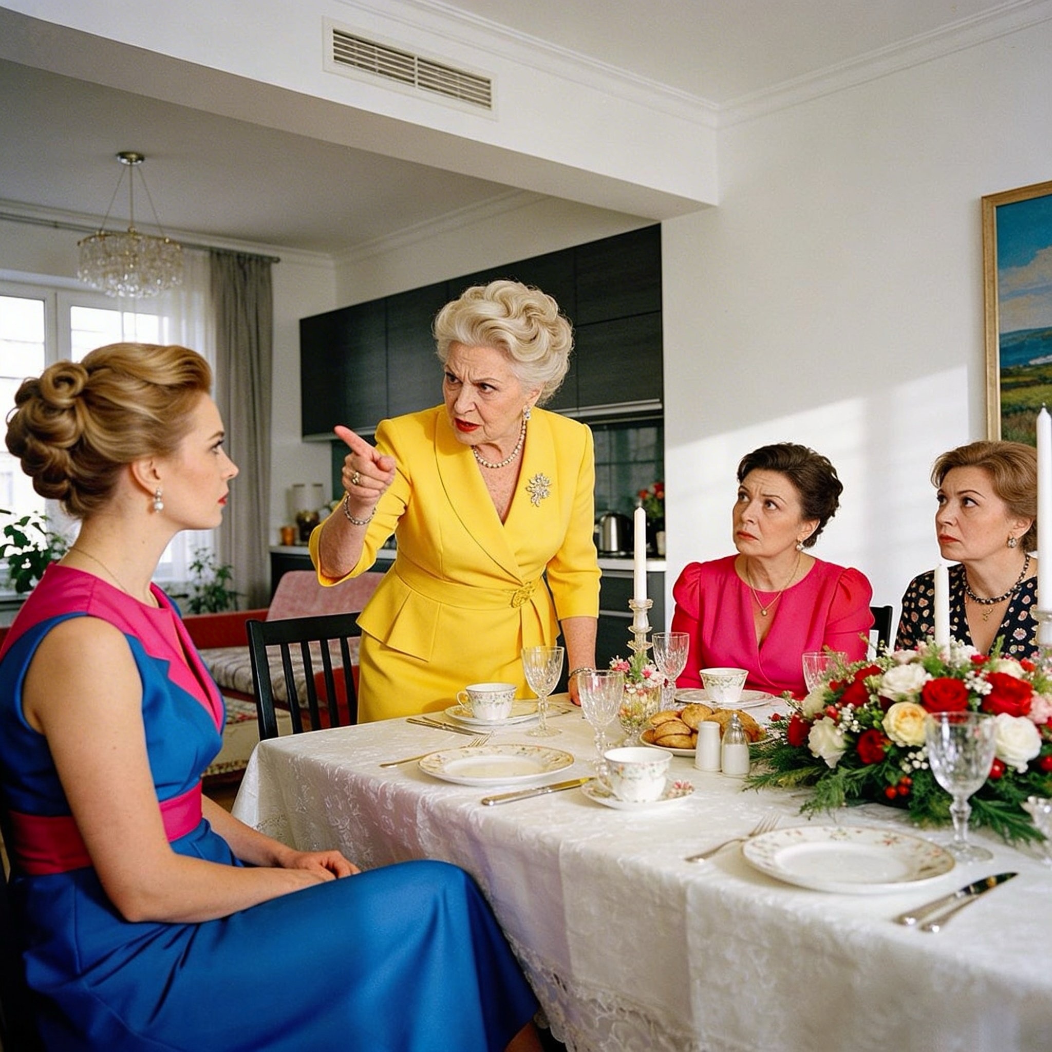 Ему исполнилось тридцать пять. Цифра красивая, повод собраться всем вместе. Нина Васильевна приехала заранее — помочь накрыть стол, как она говорила, хотя по факту она сидела на кухне, пила чай и давала советы, пока я резала, варила и расставляла тарелки.