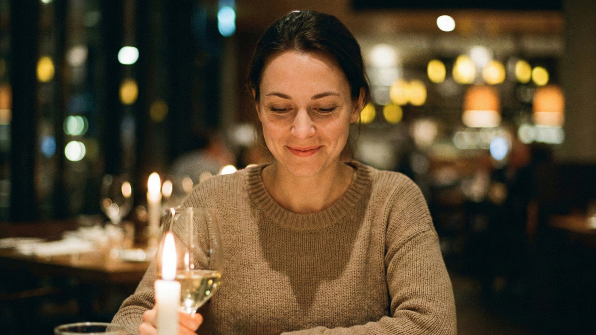 Елена замерла на пороге, чувствуя, как тяжелый букет из пятидесяти бордовых роз начинает оттягивать руку. Она огляделась в поисках уютного углового столика на четверых, который они бронировали неделю назад.