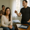 Он говорил громко, напористо, пытаясь задавить её своим авторитетом, своей мужской правотой. Он смотрел на неё сверху вниз, и в его взгляде читался ультиматум. Он не просил. Он требовал. Он ждал, что она сейчас сломается, опустит глаза, скажет, что была неправа. Но она не ломалась. Она выдержала его взгляд, и её губы тронула едва заметная, горькая усмешка.