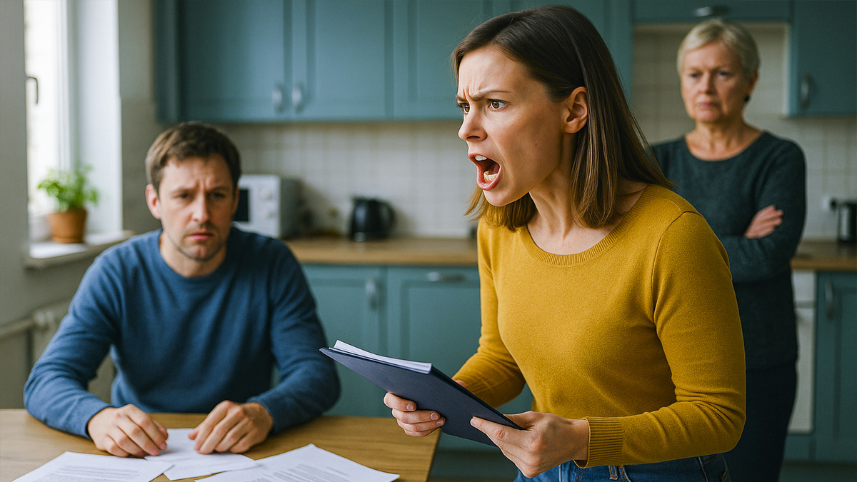 Алина швырнула папку на стол перед свекровью и мужем. Документы разлетелись по столешнице. Договор дарения лёг сверху, подделанная подпись хорошо видна.