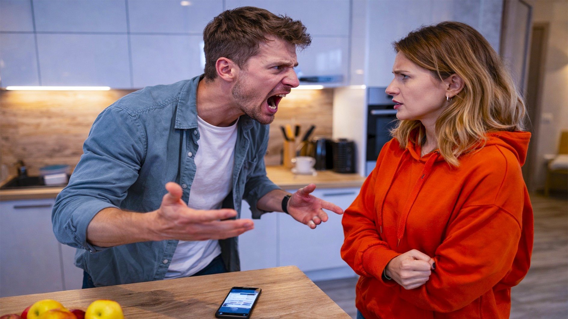 Екатерина стояла посреди кухни и смотрела на Максима. Не на мужа — на человека, которого, кажется, видела впервые. Лицо красное, желваки ходят, руки сжаты в кулаки у бёдер. И всё это из-за того, что она посмела спросить, почему с их общего счёта снова ушли деньги без единого слова.