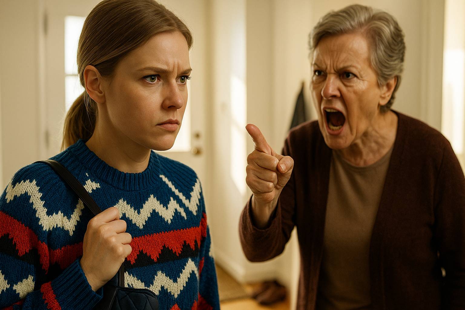 Карина рванулась изо всех сил и вырвала руку. Свекровь покачнулась, схватившись за стену. Карина, не оглядываясь, метнулась в свою комнату и заперлась изнутри.