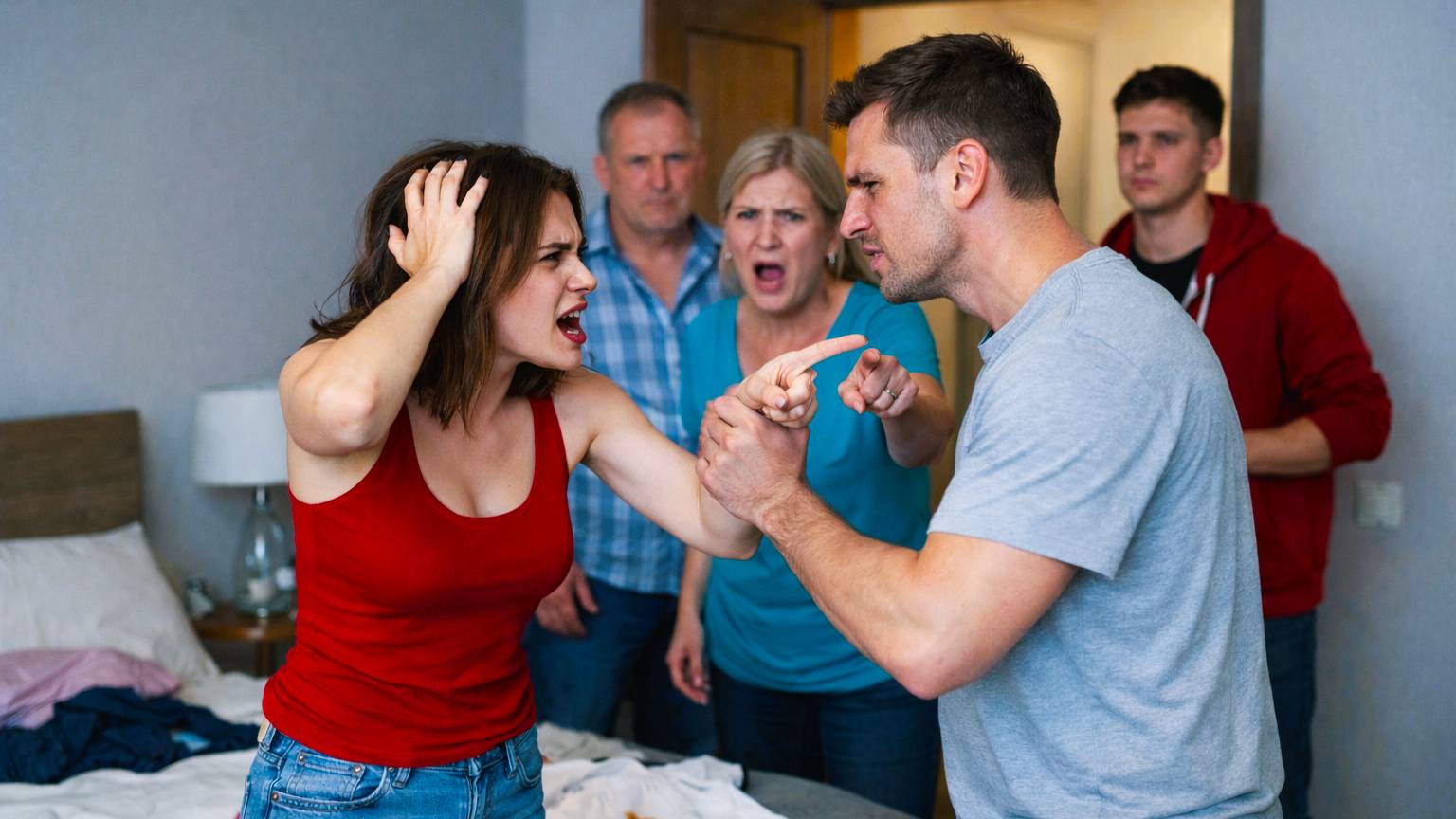 На крик прибежали домочадцы. Вера Михайловна появилась первой, за свекровью Роман Петрович. Полина выглянула из своей комнаты. Антон вышел из гостиной с банкой пива.