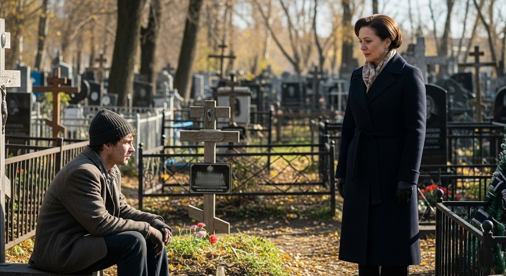 Вы тоже мою маму знали, спросил бездомный у богатой дамы, пришедшей на могилу. Она потеряла сознание